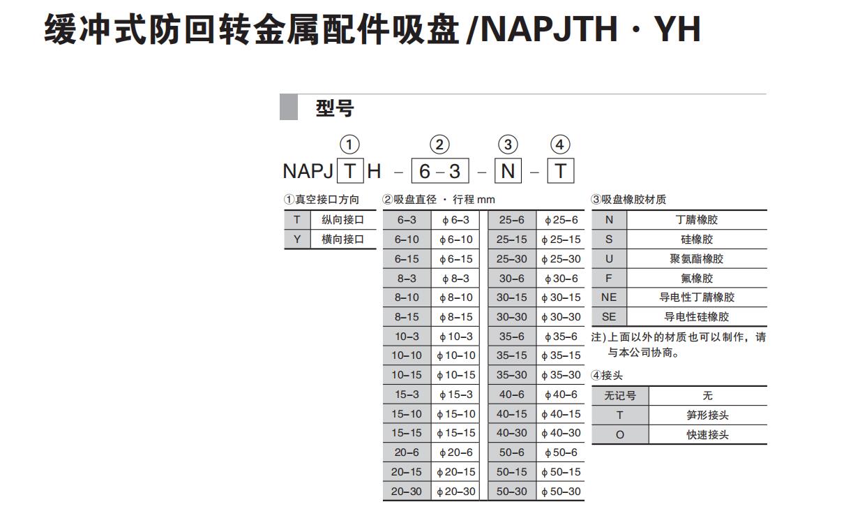 妙德真空吸盤緩沖式防回轉金屬配件NAPJTH·YH