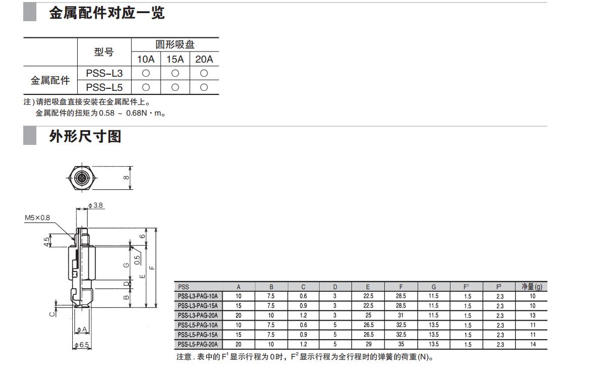 妙德真空吸盤無接頭緩沖式金屬配件PSS