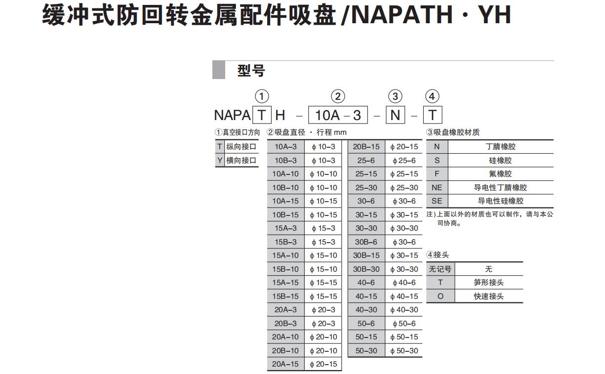 妙德真空吸盤緩沖式防回轉(zhuǎn)金屬配件 NAPATH·YH