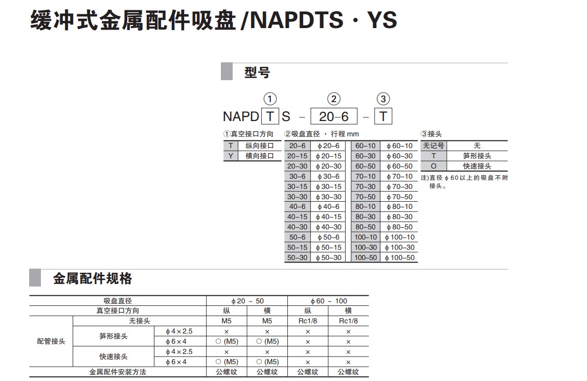 妙德真空吸盤緩沖式防回轉金屬配件NAPDTH·YH
