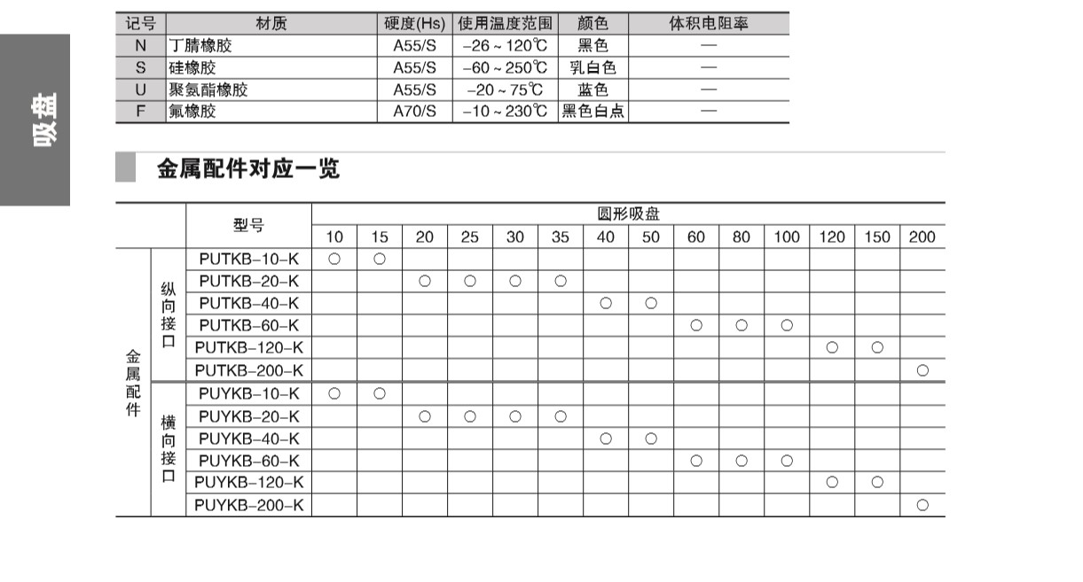 附接頭固定式金屬配件吸盤 PUTKB·PUYKB